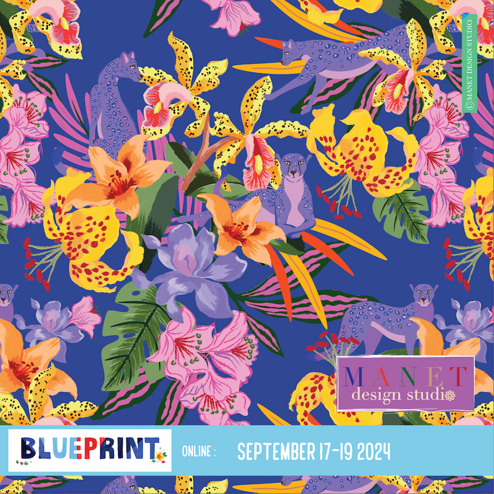This is our first time joining BLUE PRINT SURFACE DESIGN & PRINT SHOW, and we hope to be back every year ! MANET DESIGN STUDIO is a surface and print design studio company, we combine the passion of a team of Thai artists, with obsession in playful motifs and colors. The studio is know for its vivid colors, elegance, and timeless style. Our studio features a broad choice of patterns to fit the needs of different markets such as apparel, home design, and stationary etc... We provide beautiful handpainted art as well as adroitly designed digital graphics.
